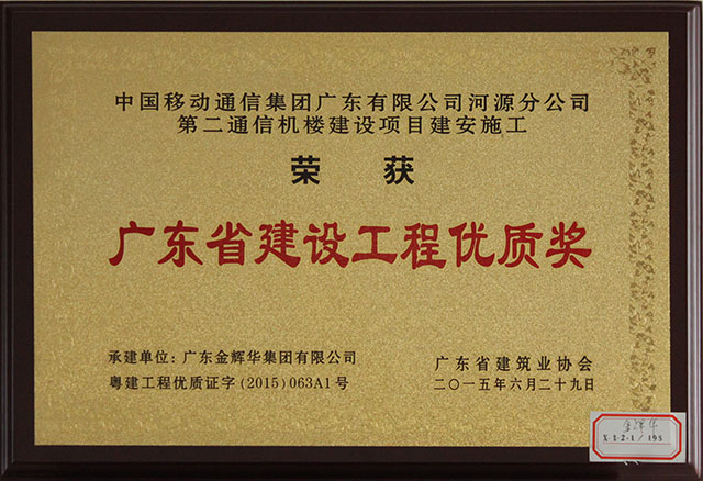熱烈慶祝我公司榮獲廣東省建設(shè)工程優(yōu)質(zhì)獎(jiǎng)
