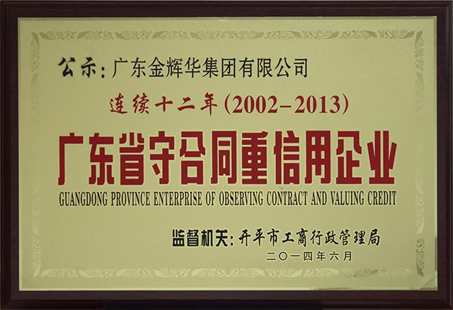日前,我集團(tuán)公司順利通過(guò)廣東省工商行政管理局的考核公示,被授予“連續(xù)十二年(2002-2013)廣東省守合同重信用企業(yè)”榮譽(yù)稱(chēng)號(hào),以表彰我司在守信經(jīng)營(yíng)、誠(chéng)信經(jīng)營(yíng)方面的優(yōu)秀表現(xiàn)。我集團(tuán)公司一貫高度注重誠(chéng)信體系建設(shè),不斷規(guī)范合同管理,著力打造企業(yè)誠(chéng)信品牌,大力加強(qiáng)企業(yè)自身的信用建設(shè),秉承了“團(tuán)結(jié)、敬業(yè)、誠(chéng)信、創(chuàng)新”品牌形象。連續(xù)十二年榮獲“廣東省守合同重信用企業(yè)”這項(xiàng)殊榮是我集團(tuán)公司企業(yè)誠(chéng)信經(jīng)營(yíng)的成果