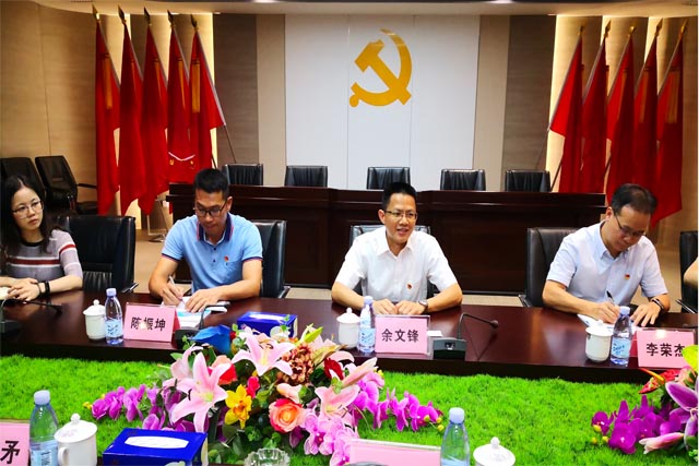 2020年6月30日下午,在開平市委常委、組織部部長余文鋒同志的帶領(lǐng)下,市委組織部副部長李榮杰、市委組織部人才股股長孫得標(biāo),以及長沙黨工委副書記陳振坤、組織辦曾秋怡等同志,來我司實地調(diào)研黨建情況。我司董事局主席周珉興、黨委書記兼法定代表人唐國忠、黨委副書記張解矛、黨委委員李慧娟、紀(jì)委委員梁國宏、集團(tuán)副總裁兼開平區(qū)域總經(jīng)理魯大鵬等同志熱情接待了調(diào)研人員。